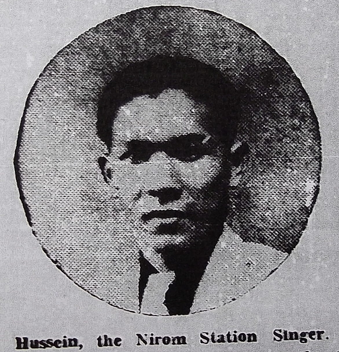 “Hussein, the Nirom Station Singer from Medan, who just arrived. Hussein won 3rd place in last year’s competition.” [The Straits Times, May 13, 1939, 2]
