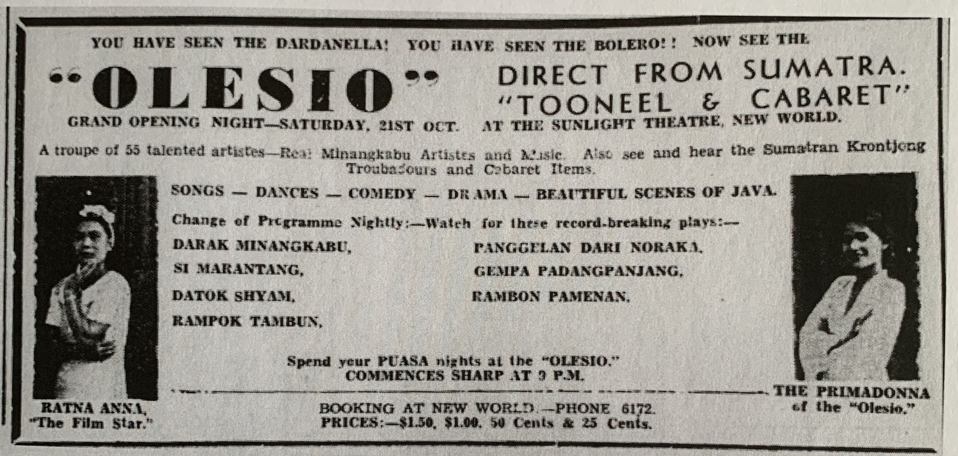 True of 55 performers from Sumatra who came to Singapore in 1939.